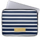 Navy Stripe Pattern Gold Name Template Laptop Sleeve