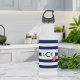 Navy Stripe & Pink Peony Monogram Water Bottle