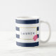 This mug features a bold navy blue and white stripe background, faux gold border, and a pretty pink peony in soft watercolors. Coordinates with our Navy Stripe & Pink Peony office accessories, paper products, and accessories. Customize with a name, monogram, or text of your choice!