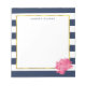 Navy Stripe & Pink Peony Personalized Notepad