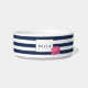 Navy Stripe & Pink Peony Personalized Pet Bowl