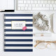 This gorgeous notebook features a bold navy blue and white stripe background, faux gold border, and a pretty pink peony in soft watercolors. Coordinates with our Navy Stripe & Pink Peony office accessories, paper products, and accessories.