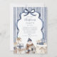 A sophisticated navy-striped Christmas invitation featuring watercolor Santa, elegant gift boxes, and soft neutral accents. The hand-painted bow frame and minimalist palette evoke a refined winter charm — perfect for formal holiday gatherings or cozy festive parties alike.