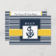 navy blue and white stripes with yellow border and white dotted border featuring an anchor, Mod nautical wedding rsvp. Matching products also available.