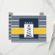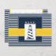 navy blue and white stripes with yellow border and white dotted border featuring an lighthouse, Mod nautical wedding rsvp. Matching products also available.