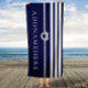 Navy Stripes & Rope Personalized Name Bath Towel. Simply edit text to personalize!