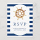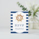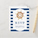 Navy Stripes Steering Wheel Nautical Wedding RSVP Postcard