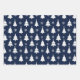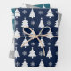 Navy, Teal & Silver Winter Christmas Tree Pattern Wrapping Paper Sheets