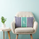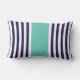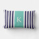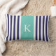 Navy Teal Stripes Monogram Lumbar Pillow