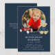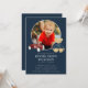 Honor the memory of a beloved child with this touching funeral announcement. This design features a cherished photograph of your little one, surrounded by sweet illustrations of a toy car and teddy bear, set against a classic navy blue background. The phrase 'In Loving Memory' elegantly precedes the name and dates, followed by the service details. This announcement serves as a gentle and loving way to share the news of a memorial service, allowing friends and family to gather and remember your precious child. The back of the card offers space for additional details like the reception venue or a personal message, ensuring all necessary information is conveyed with warmth and grace.
