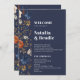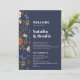 A lovely handpainted watercolor border with a modern font and dark moody theme. Easily edit the template to suit your wedding event. Navy Terracotta Boho Wedding Program