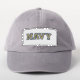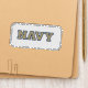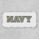 This design showcases the word "NAVY" in a strong, uppercase font. The letters are filled with a distinct gold/tan color and are sharply outlined in a deep navy blue. The typography is clean and impactful, creating a recognizable and classic representation of the United States Navy nameplate. The design is simple yet powerful, conveying strength and tradition associated with the naval service.