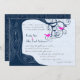 Navy Tree Swirls Fuchsia Pink Wedding Invitation