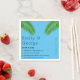 These elegant beach wedding napkins are perfect for a modern summer seaside wedding. The romantic design features green palm leaves with elegant black typography on a teal background.