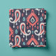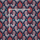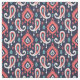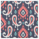 Navy Turquoise and Coral Ikat Paisley Fabric