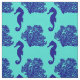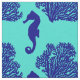 Navy Turquoise Seahorse Coastal Pattern Fabric