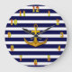 Anchor and navy stripes make trendy your wall clock in nautic style.