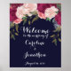 A beautiful welcome sign to display at your wedding reception/party etc. Navy background and burgundy/blush pink florals create a stylish impression. Perfect for weddings all year round. Simply change the wording/names to suit your own details. Some graphics used from TwigsAndTwineArt.com.