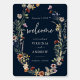 This stylish & elegant wedding welcome poster features gorgeous hand-painted watercolor wildflowers arranged as a lovely wreath that's perfect for spring, summer, or fall weddings. Find matching items in the Navy Blue Boho Wildflower Wedding Collection.