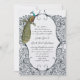 Navy Whimsical Peacock Love Bird Pattern Wedding Invitation