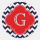 Navy White Chevron Red Quatrefoil Monogram Classic Round Sticker