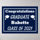 Honor your grad with this Navy White Congratulation Graduation Poster. Personalize with your graduate's name and class year. This minimalist school colors poster has plenty of school spirit.