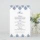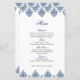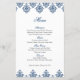 You can customize the text on this navy blue and white damask arabesque floral wedding or special occasion menu card. To change the text, use the personalize option. For more extensive changes to the menu, including changes to the font, font sizes, font color, or text placement, use the customize it option. A beautiful and elegant choice for a wedding in any season or any other special occasion such as a retirement, anniversary, or birthday party. Blue and white is a stylish, traditional choice.