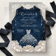 Let your sparkle steal the spotlight with this diamond quinceañera design that’s pure luxury! The navy and ivory tones, paired with strings of jewels, lush curtains, and pretty florals, set the tone for an elegant and glamorous celebration. Perfect for a royal princess quince, a lavish gala, or a chic ballroom affair. Get yours now and make your quince shine bright!