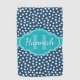 Navy White Dotted Pattern Teal Monogram Golf Towel