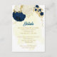 Romantic navy blue & white flowers with gold leaves botanical wedding details enclosure cards.