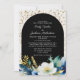 Navy White Gold Floral Arch Glitter Wedding Invitation