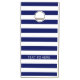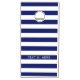 Navy White Horizontal Preppy Stripe Name Monogram Cornhole Set