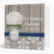 Pretty rustic style monogrammed mason jar binder with a white hydrangea flower and a wooden fence and antique damask pattern lace background and stitched navy blue hued ribbon. This wedding organizer can be personalized with the initials and monogram of the bride and groom on the mason jar and customized with the names of the happy couple on the spine of the organizer. Perfect for a country, farmhouse, garden party or barnyard style wedding. Designed by Chrissy H. Studios, LLC. All rights reserved.
