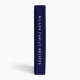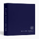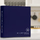Modern recipe binder features a minimal design in a classic navy blue and white color palette. Custom family name presented in the lower right hand corner in stylish simple font with a complimentary minimal monogram medallion.