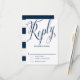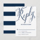 Elegant and modern wedding RSVP card featuring whimsical calligraphy script in navy and stripes pattern. This is a part of a wedding suite. Other colors and matching items are available in my store.
