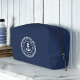 Organize your essentials with this customizable navy nautical toiletry bag by Redwood & Vine Design Co. Designed with a bold white anchor and rope emblem, this sturdy bag can be personalized with your boat name, year, or custom text. Perfect for sailing excursions, beachside vacations, or everyday travel, it makes a functional and stylish gift for those who love the sea.