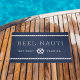Welcome guests aboard your boat with this cool custom doormat featuring your boat name and ship's registry in white lettering on a classic navy blue background. White rope trim and a ship's wheel illustration add nautical flair.