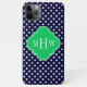 Navy White Polka Dot Emerald Quatrefoil 3 Monogram Case-Mate iPhone Case