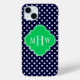 Navy White Polka Dot Emerald Quatrefoil 3 Monogram Case-Mate iPhone Case