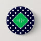 Navy White Polka Dot Emerald Quatrefoil 3 Monogram Pinback Button
