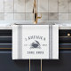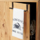 Customize your shore house or beach house kitchen with this cute personalized towel featuring your family name or house name and year established in rich navy blue lettering accented with a crab illustration.