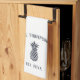 Customize your kitchen with this cute personalized kitchen towel featuring your family name and year established in rich navy blue lettering accented with a pineapple illustration.