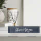 Elegant desk nameplate features your name, title, or choice of personalization in white hand scripted cursive lettering on a dusty navy blue background.