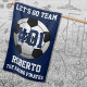 Hang this Navy White Soccer Team Colors Flag to support your athlete. Personalize with your players name, number and team name. You can even change the message. Cheer on your local high school soccer team, youth league team or even college team.