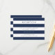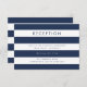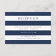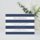 Elegant and simple reception enclosure cards feature modern lettering on a navy blue and white striped background.