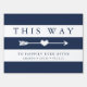 Point wedding guests in the right direction with this charming directional sign. Design features "this way to happily ever after" on a navy blue and white striped background with a heart and arrow illustration to direct your guests. Personalize with your names and wedding date at the bottom. Double sided design.