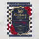 Navy White Stripes Red Roses Photo 50th Birthday Invitation