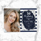 Navy White Stripes Silver Photo 50th Birthday Invitation