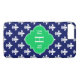 Navy Wht Fleur de Lis Emerald 3 Initial Monogram Case-Mate iPhone Case