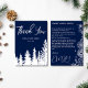 A navy thank you card featuring pine trees, soft snow accents, and elegant fonts, creating a cozy and sophisticated winter forest design, perfect for expressing gratitude after a winter wedding.